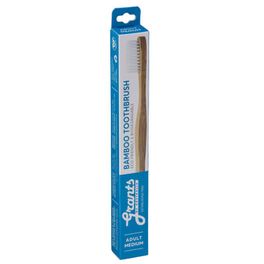 Grants biodegradable bamboo toothbrush is an eco-friendly way to brush your teeth. Our handles are made from 100% biodegradable and environmentally sustainable bamboo. The bristles are made from nylon which aren’t compostable but can be recycled. Break off the bristle head or remove the bristles with pliers and recycle as per your local recycling facility guidelines. The bare bamboo handle can then be composted and will safely return to the soil. Each toothbrush is individually sealed in a corn starch wrapper than can be composted and boxes can be recycled.